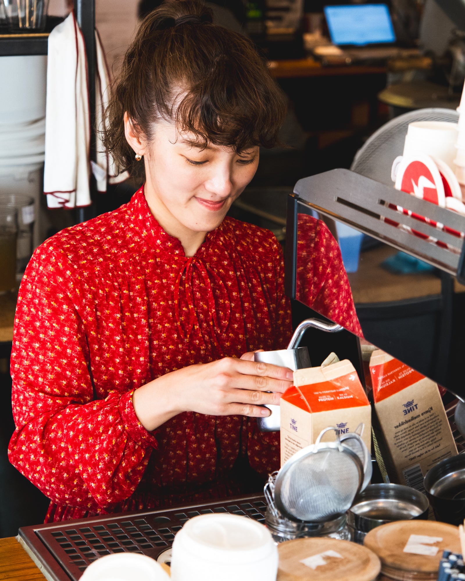 She has been working at Fuglen for 3.5 years and her favorite coffees are washed Ethiopian coffees! Today Arisa has been helping us out in Gamlebyen labeling bags, packing coffee, and making cappuccinos for our wonderful customers. For the next couple days she will be spotlighting downtown at Fuglen Oslo so make sure to stop by and say hi!