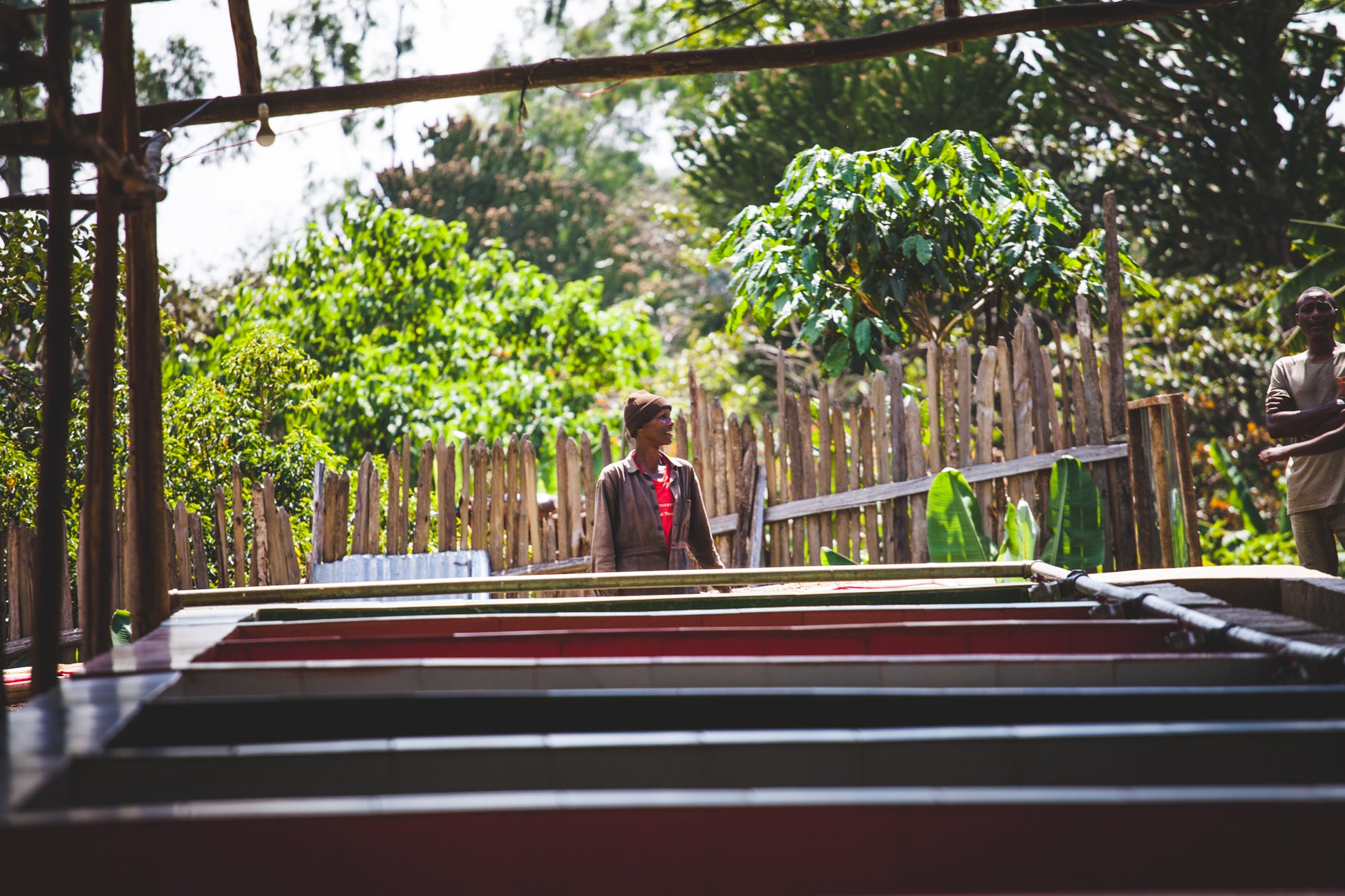 This natural processed coffee is dried on elevated african beds. The fermentation that takes place during this process is different to the washed process or pulped natural process, as the bean is surrounded by the cherry and the pulp, allowing the active ingredients of the pulp to penetrate the bean through osmosis. It is similar to drying fruit as at the end of the day coffee beans resemble dried fruit or berries. Through this process the coffee flavor becomes sweeter and more intense. The drying process lasts 2-3 weeks, during which the cherries are turned 3 times per day for constant drying. Bean fermentation happens as the heat, under the sun, allows for bacteria to grow, and slowly consume the sugars inside.