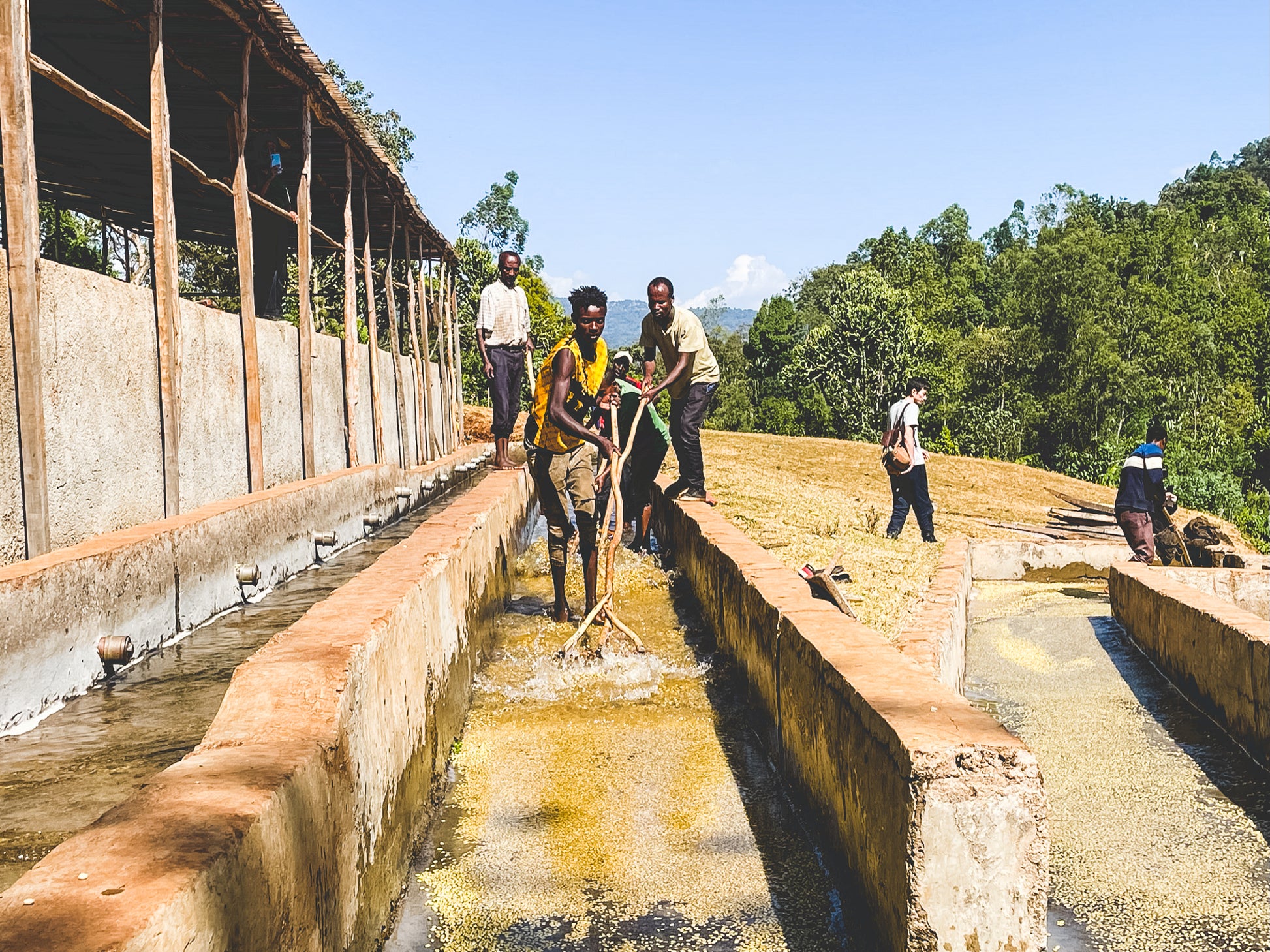 Bensa Logita Station is bordered by its namesake, Logita river that generously provides cold and clean water to the station. In recent years it has become an experimentation hub of MOPLACO. The station can process around 1800 bags of bright, distinct coffee with deep complexity and aromatics from washed coffees, to honey coffees, experimental lots and great natural processed coffees. Moplaco Trading has four washing stations and drying stations across Sidamo and Yirgacheffe, with hulling equipment and guest rooms so that their clients can come, rest and experiment with them.